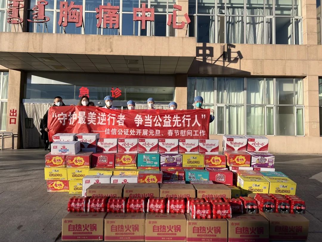 12月28日下午,佳信公證處郝鳳霞主任一行為我院東勝部急診科一線醫(yī)務(wù)人員送來方便食品,助力疫情防控工作。